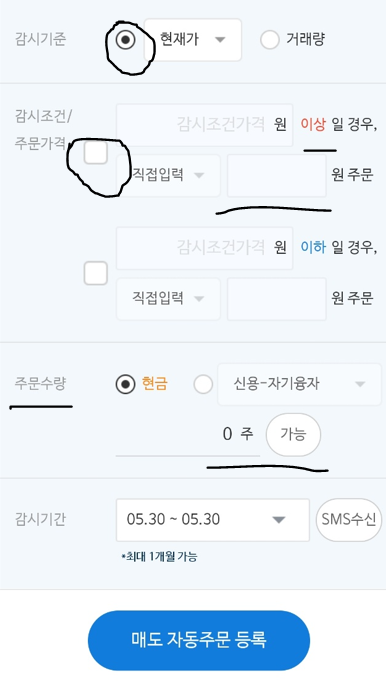 오늘은 한 달 동안 내가 원하는 가격을 설정하고 해당 가격에 도달하면 자동으로 매수 또는 매도하는 방법을 배웠습니다! 사면 밀리지 않고 사서 팔 수 있어요~ 이 방법은 많은 분들이 알고 계시니 모르시면 팔로우 하셔도 됩니다~~ 제가 주로 사용하는 미래자산 알려주세요~