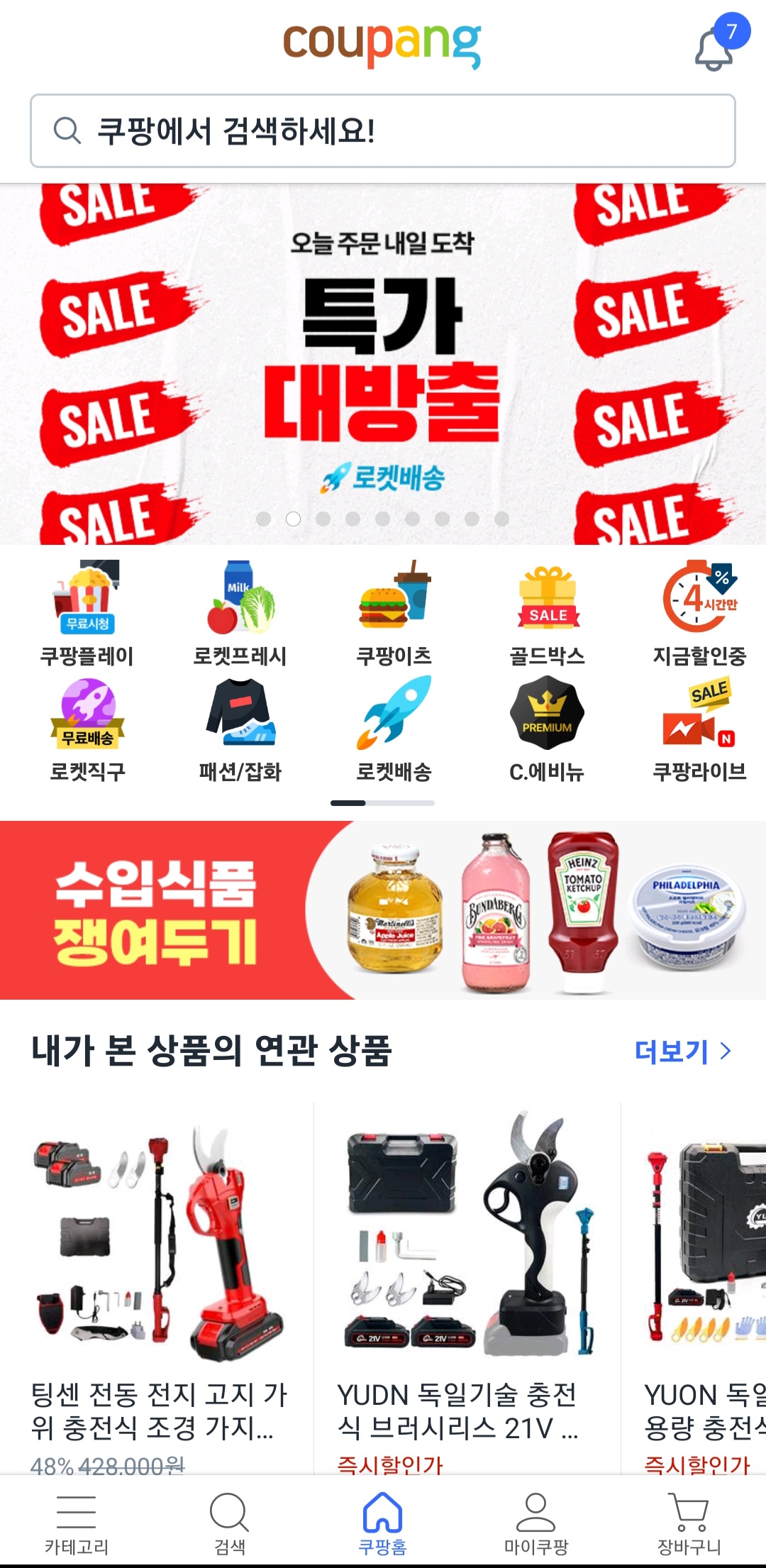먼저 쿠팡 앱을 실행합니다. 바닥에 마이쿠폰 클릭 그런 다음 마이 쿠팡 페이지로 이동합니다.